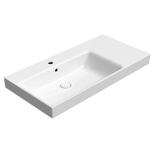 Keramická umývadlová doska NUBES 100x50cm, s policou na pravej strane, biela ExtraGlaze