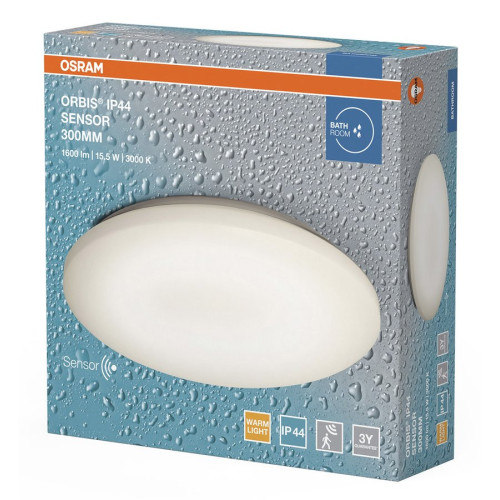 Stropné svietidlo do kúpeľne ORBIS, ø 300 mm, senzor, OSRAM, 1600 lm, 15,5 W, IP44