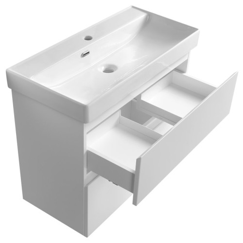 Umyvadlové skrinky sú vybavené výsuvnými zásuvkami s tichým dovieraním od spoločnosti Hettich.