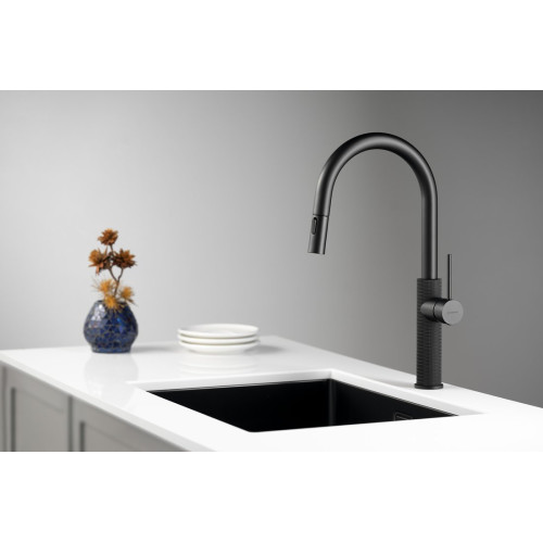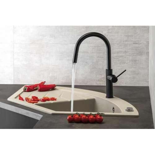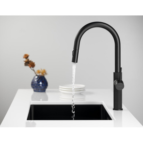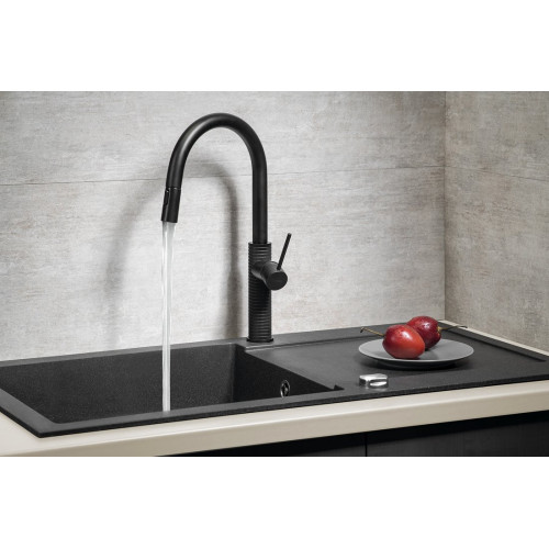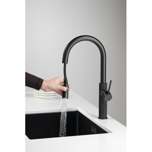 FLAWO stojanová batéria s výsuvnou sprchou, matná čierna