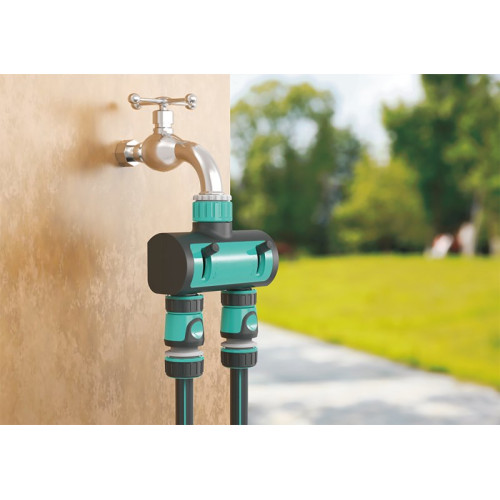 FESTA AQUATIC 2-cestný rozdeľovač je praktický záhradný doplnok určený na rozdelenie jedného zdroja vody na dva samostatné výstupy. Umožňuje pripojiť dve záhradné hadice, zavlažovače alebo zavlažovacie systémy súčasne bez nutnosti neustáleho prepínania medzi nimi. Ideálne riešenie pre pohodlné a efektívne zavlažovanie záhrady.