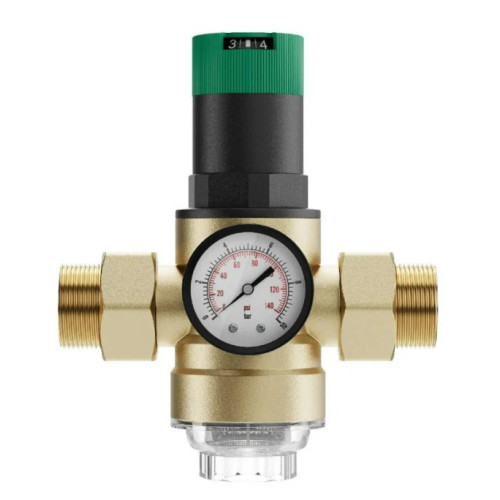 Regulátor tlaku s filtrom 40 µm – 3/4" USTM je membránový redukčný ventil s integrovaným 40-mikrónovým hygienickým filtrom, ktorý slúži na ochranu vodovodných a sanitárnych inštalácií pred kolísaním tlaku a mechanickými nečistotami. Tento regulátor je ideálny na inštaláciu pred filtračnými systémami, úpravňami vody, domácimi spotrebičmi alebo inými zariadeniami, aby zabezpečil dlhodobú spoľahlivosť, stabilný tlak a čistotu vody.