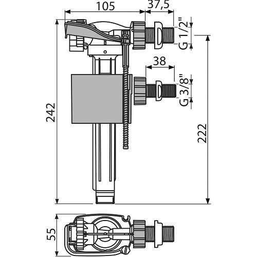 Bočný plniaci ventil ALCA A150UNI, plastový závit 1/2" + 3/8“