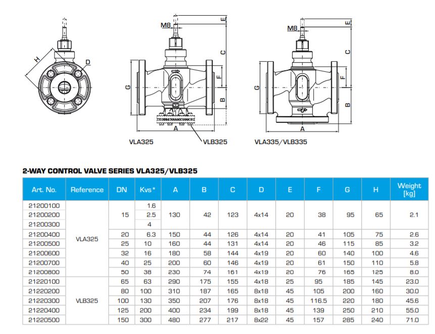 ESBE VLB 325 Zdvihový 2-cestný ventil DN80 - Kvs 100 m3 / h