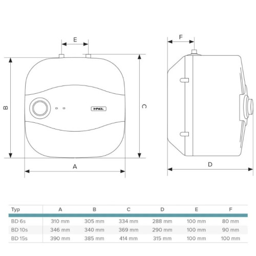 HAKL BD 10s je výkonný a kompaktný tlakový elektrický ohrievač vody s objemom 10 litrov. Je špeciálne navrhnutý pre inštaláciu pod drez alebo umývadlo (horné vývody). Vďaka zvýšenému príkonu 2 kW zaisťuje veľmi rýchly ohrev vody, čo z neho robí ideálnu voľbu pre vyťaženejšie kuchyne, kúpeľne, dielne alebo kancelárie.