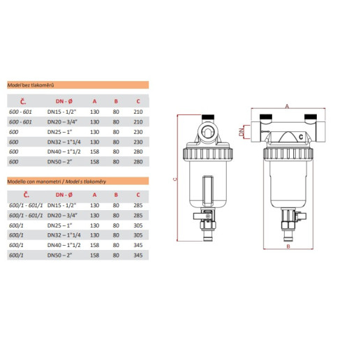 • Dostupné veľkosti pripojenia: od 1″ G do 2″ G