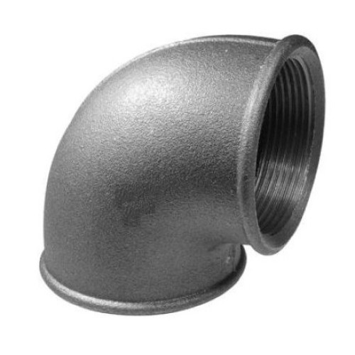 Závitová armatúra z tvrdenej liatiny, typ – 90° d kolená armatúra s vnútorným potrubným závitom, čierna povrchová úprava. Vnútorné závity Rc sú kužeľové pre závitové spoje v súlade s normou ISO 7-1.