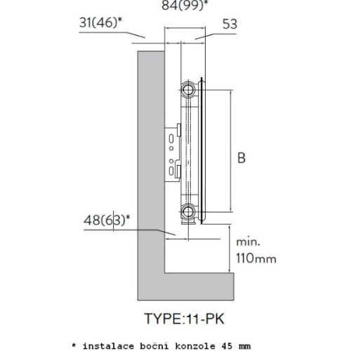 Konštrukcia: typ 11 (jediný panel s jedným konvektorom)